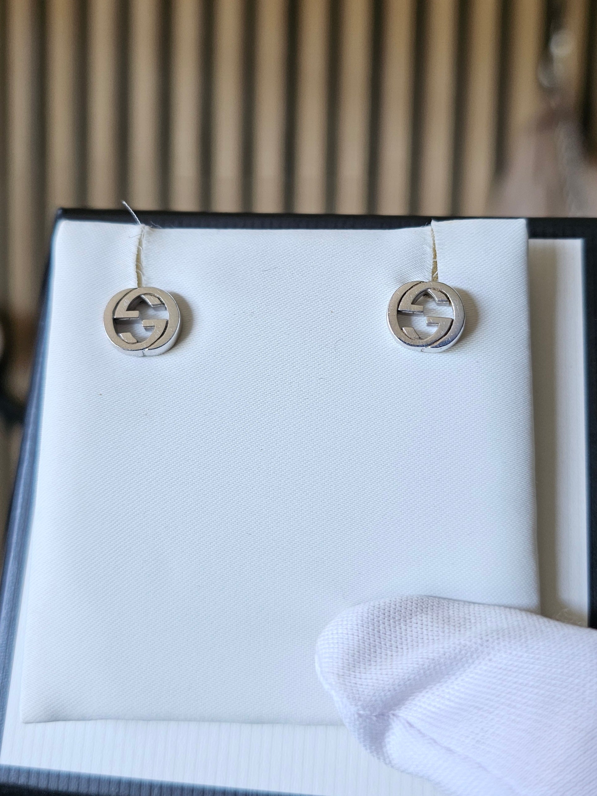Beskrivelse: Små fine øreringe fra gucci, interlocking model. Øreringene er ægte sterling silver 925.